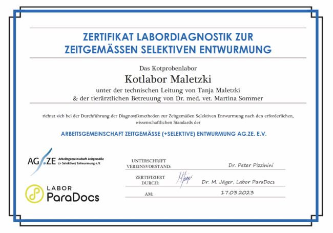 Zertifikat Labordiagnostik zur zeitgemäßen selektiven Entwurmung